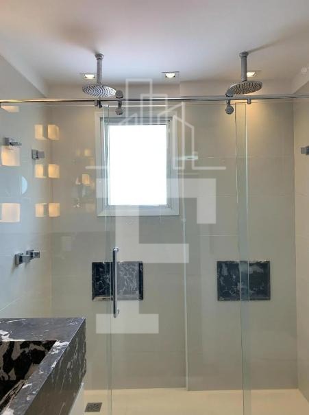 Suíte Principal: Banheiro com pia de mármore, duas duchas e louças/cubas Deca.