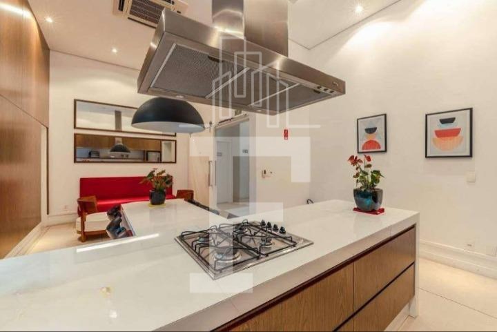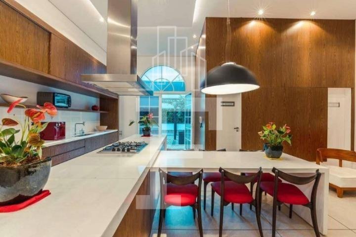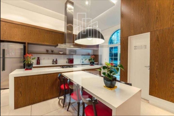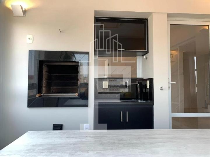 Cozinha: Planejada com eletrodomésticos Brastemp, incluindo fogão e coifa. A cozinha dá acesso à varanda gourmet integrada, que conta com churrasqueira e espaço para uma grande mesa.