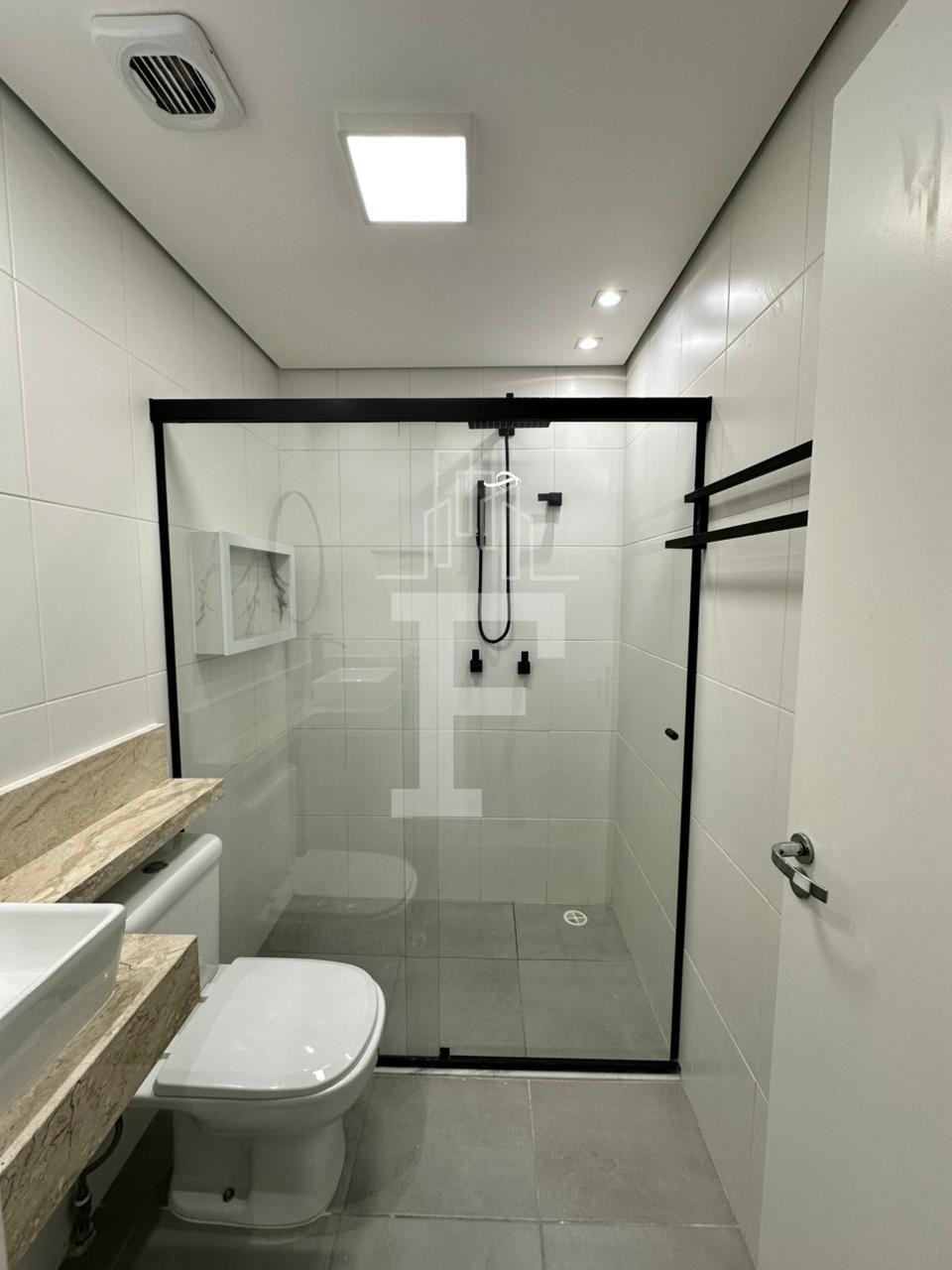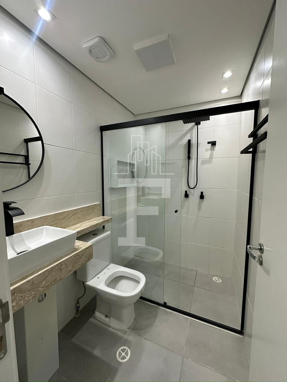 • Banheiro moderno e bem projetado.