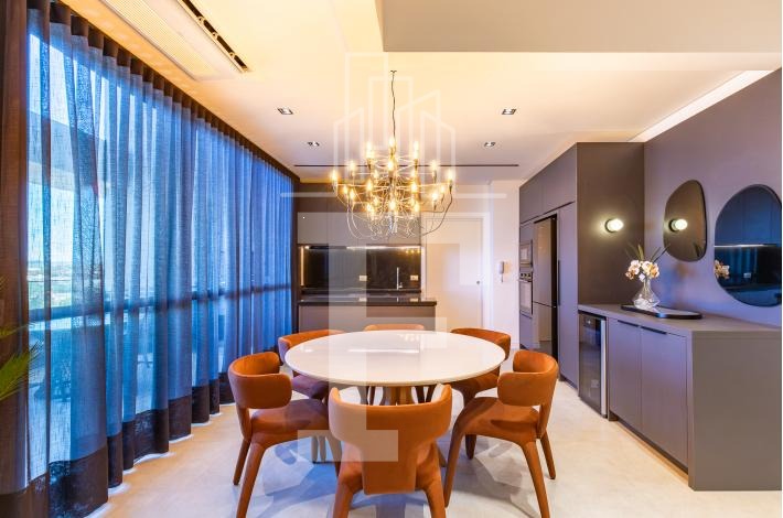 Com 141 m² privativos, totalmente decorado e mobiliado, o imóvel está pronto para morar.