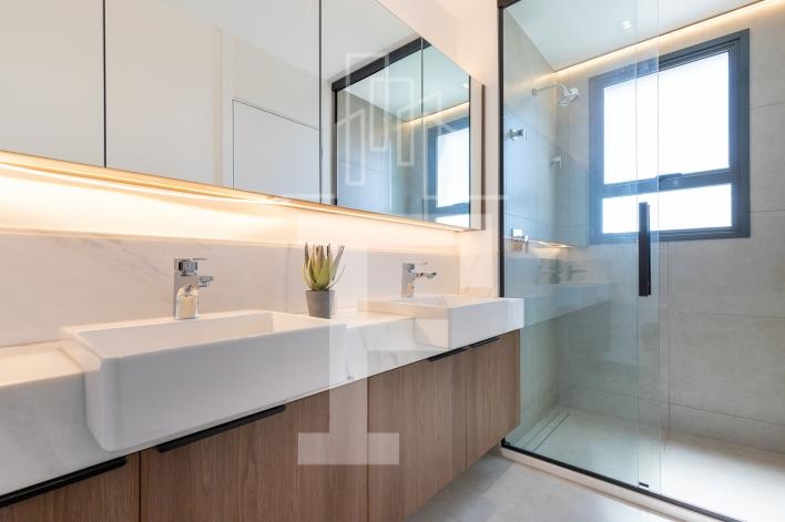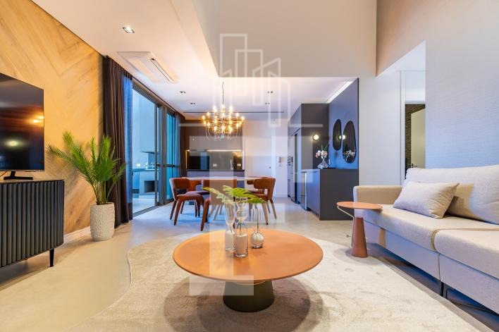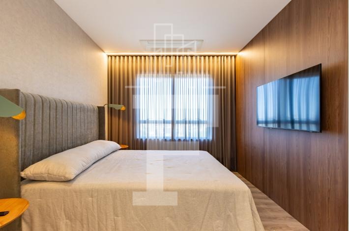 O apartamento é 100% climatizado, com ar-condicionado em todos os ambientes e eletrodomésticos completos: geladeira, fogão, exaustor, forno, micro-ondas, adega, TVs, aquecedor e lava & seca.