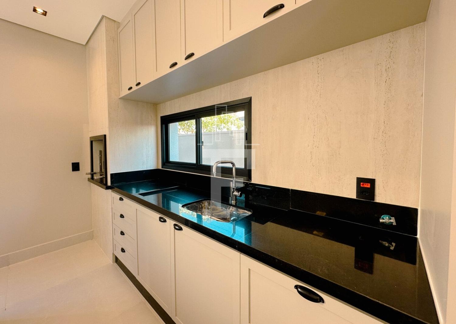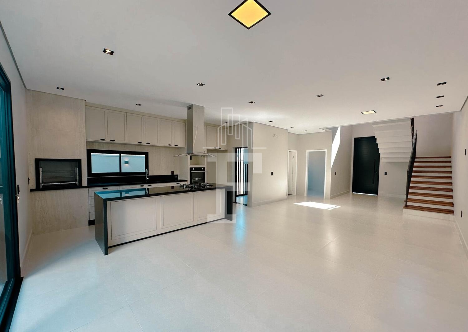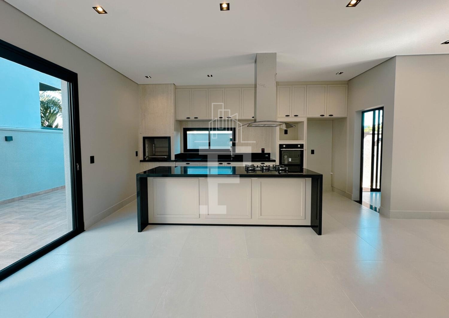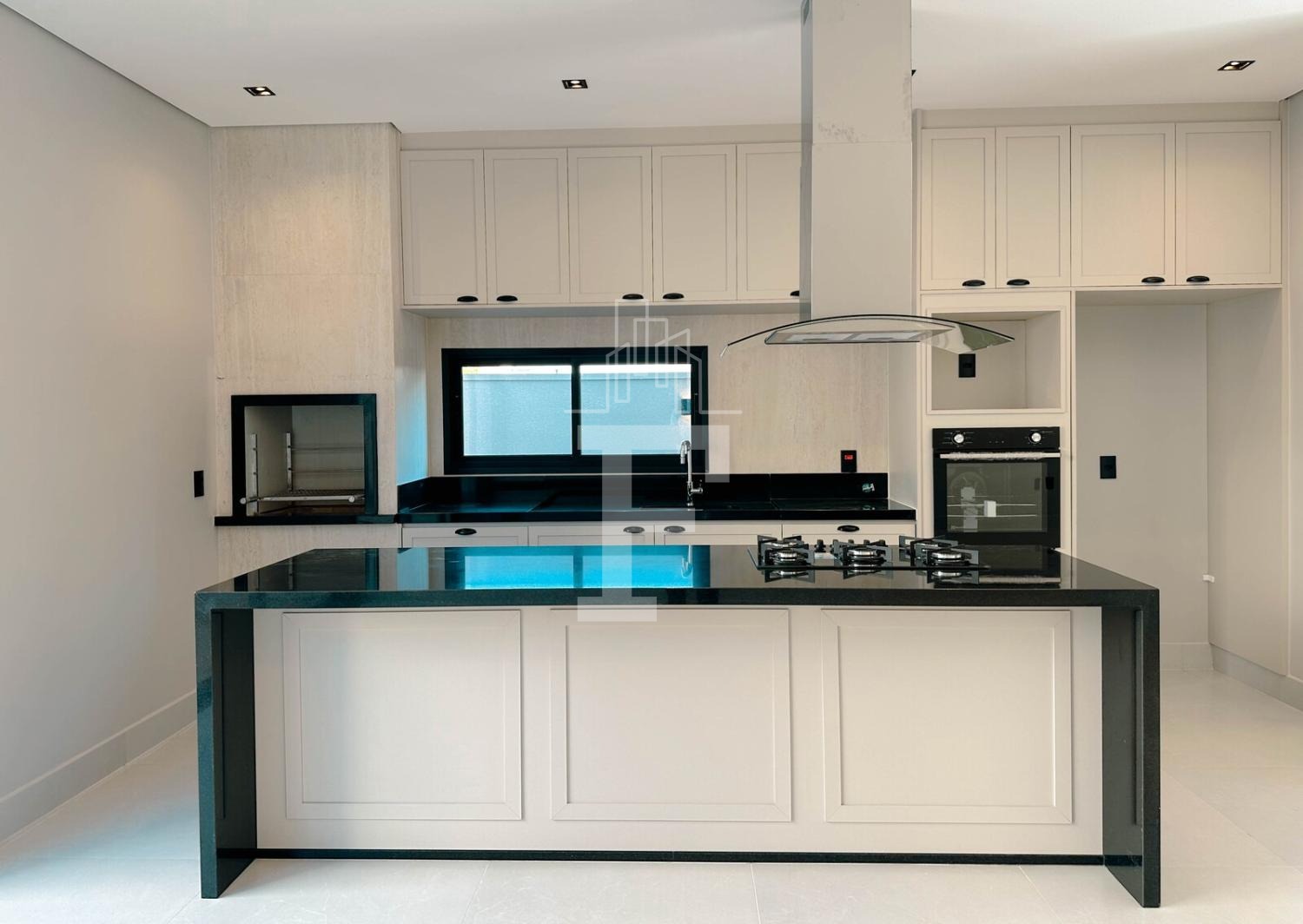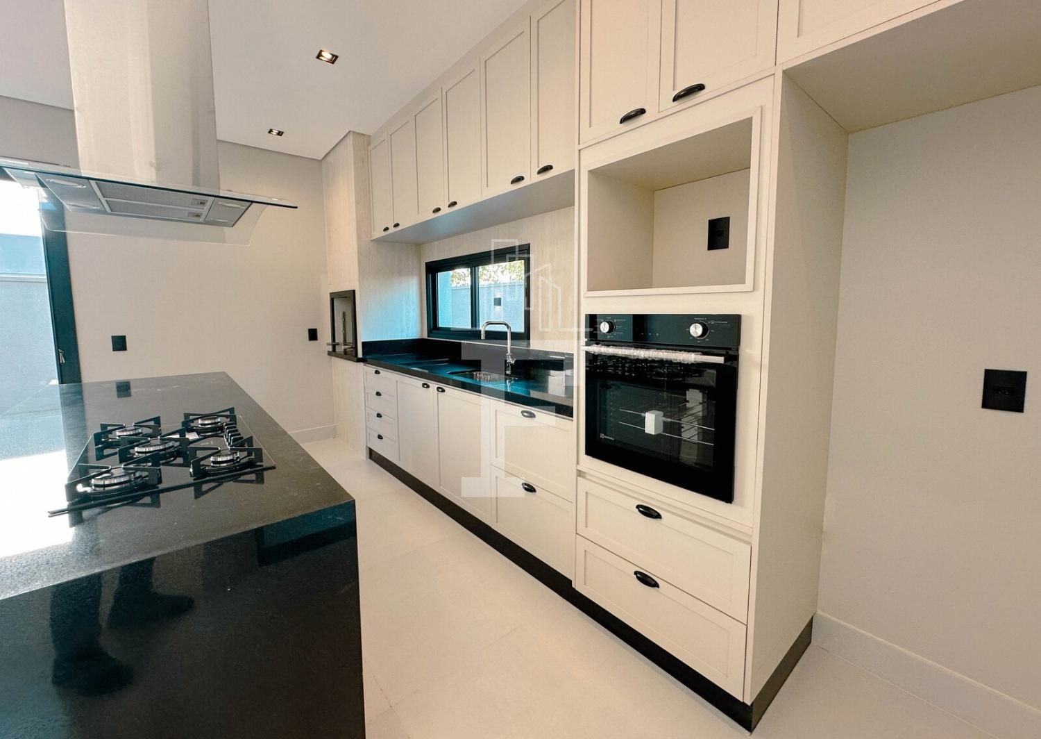 Cozinha gourmet com forno, cooktop e coifa