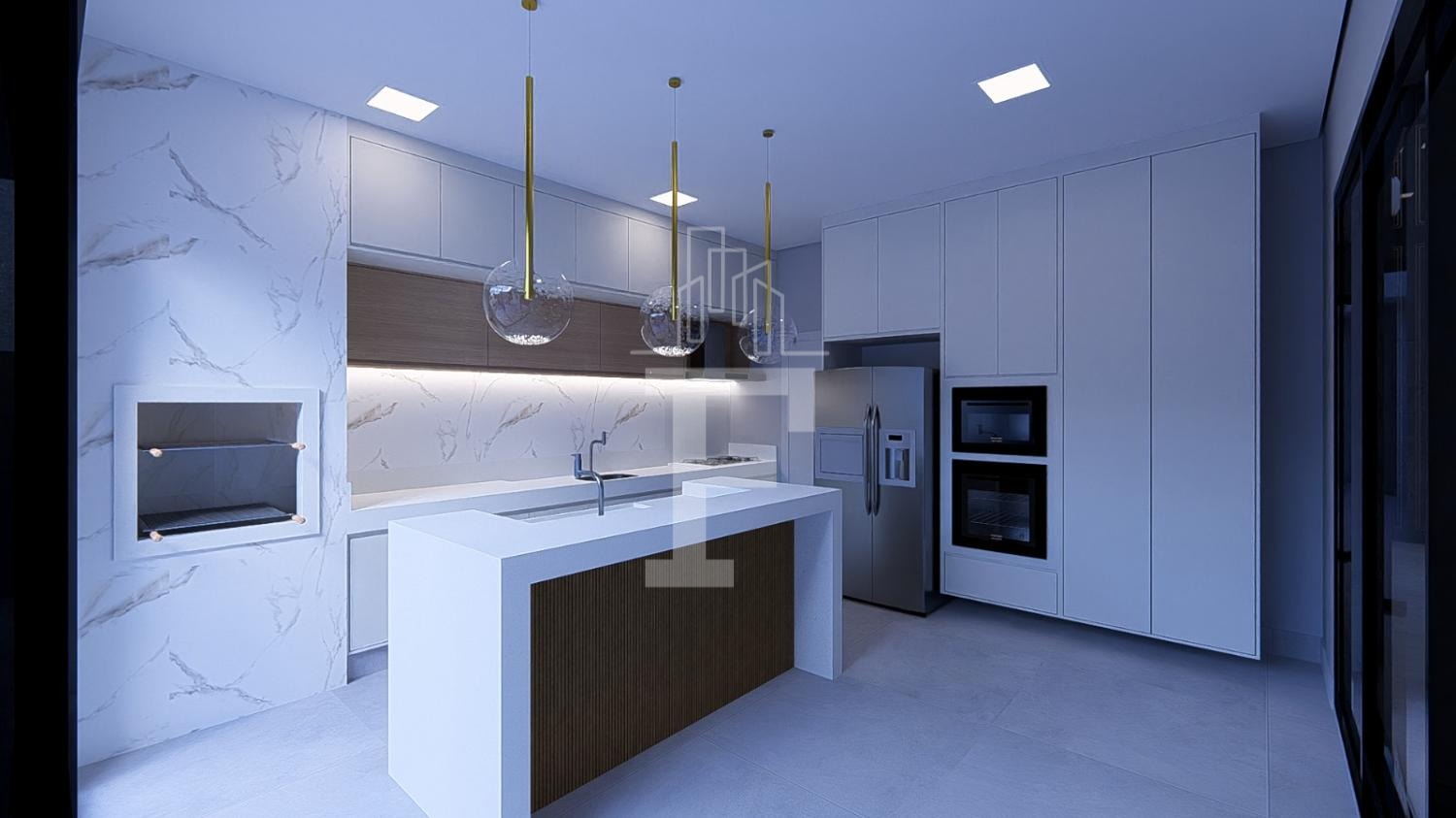 🔹 Cozinha integrada à área gourmet – perfeita para reunir família e amigos