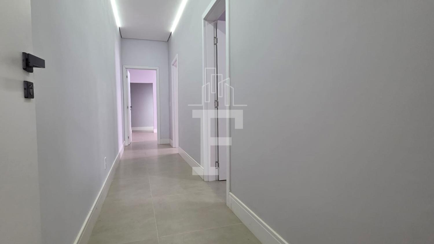 O acabamento em porcelanato de alto padrão valoriza os ambientes e evidencia o cuidado presente em cada detalhe desta bela residência.