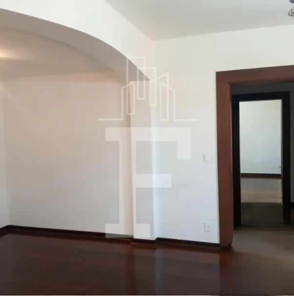 Living amplo e sala de jantar com piso em ipê