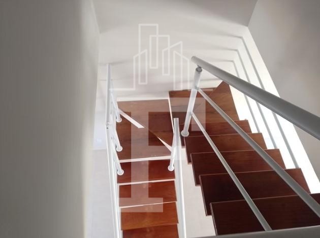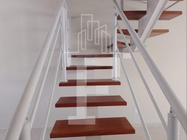 ✔ Escada em madeira com corrimão em aço