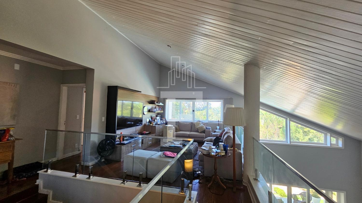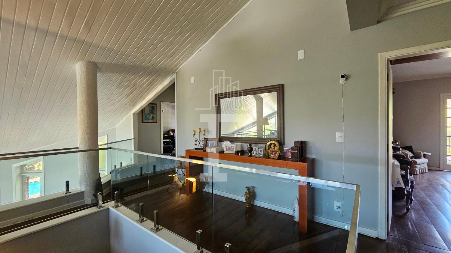 • Mezanino aconchegante, atualmente uma sala de TV privativa, perfeita para noites em família.