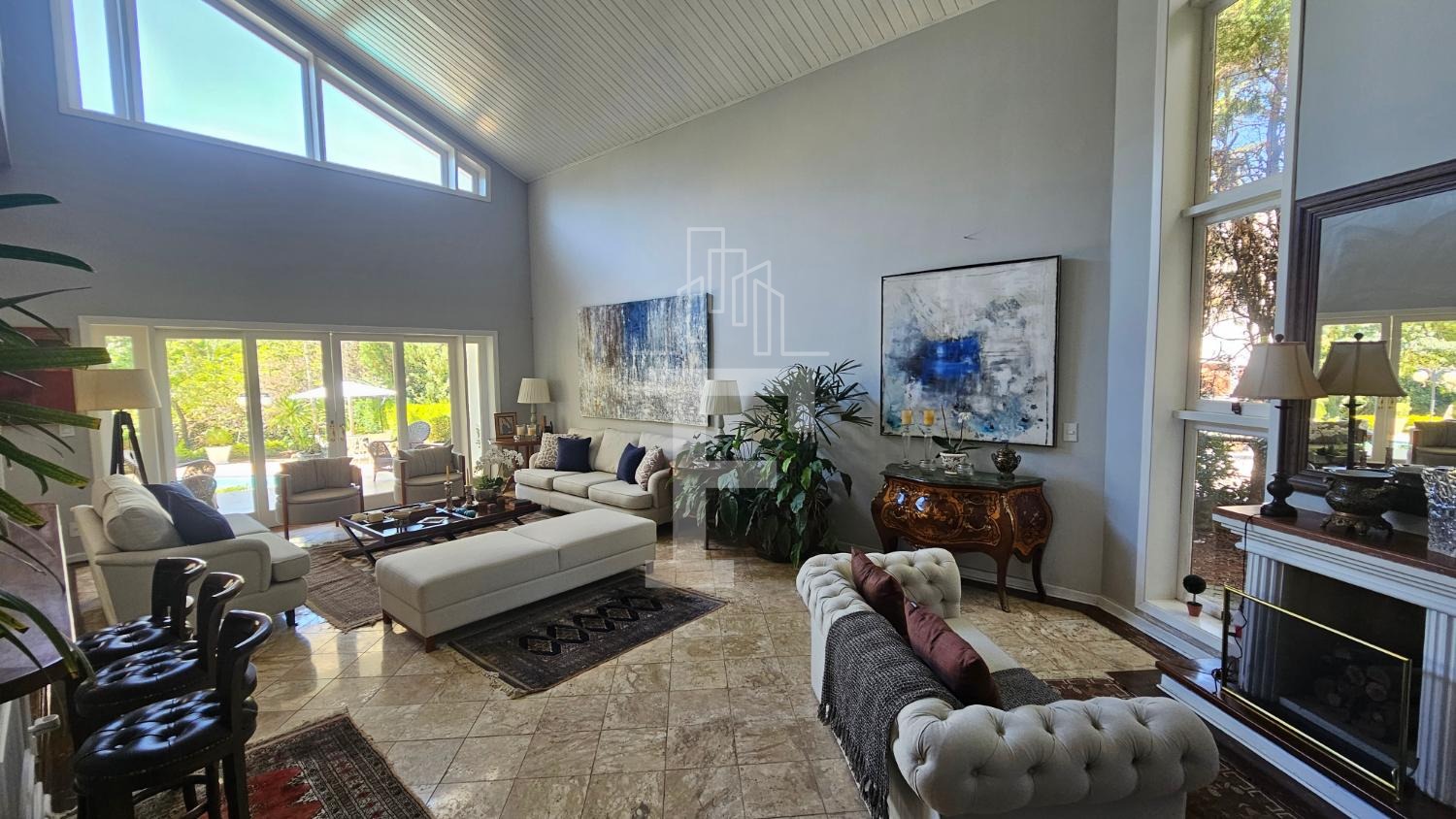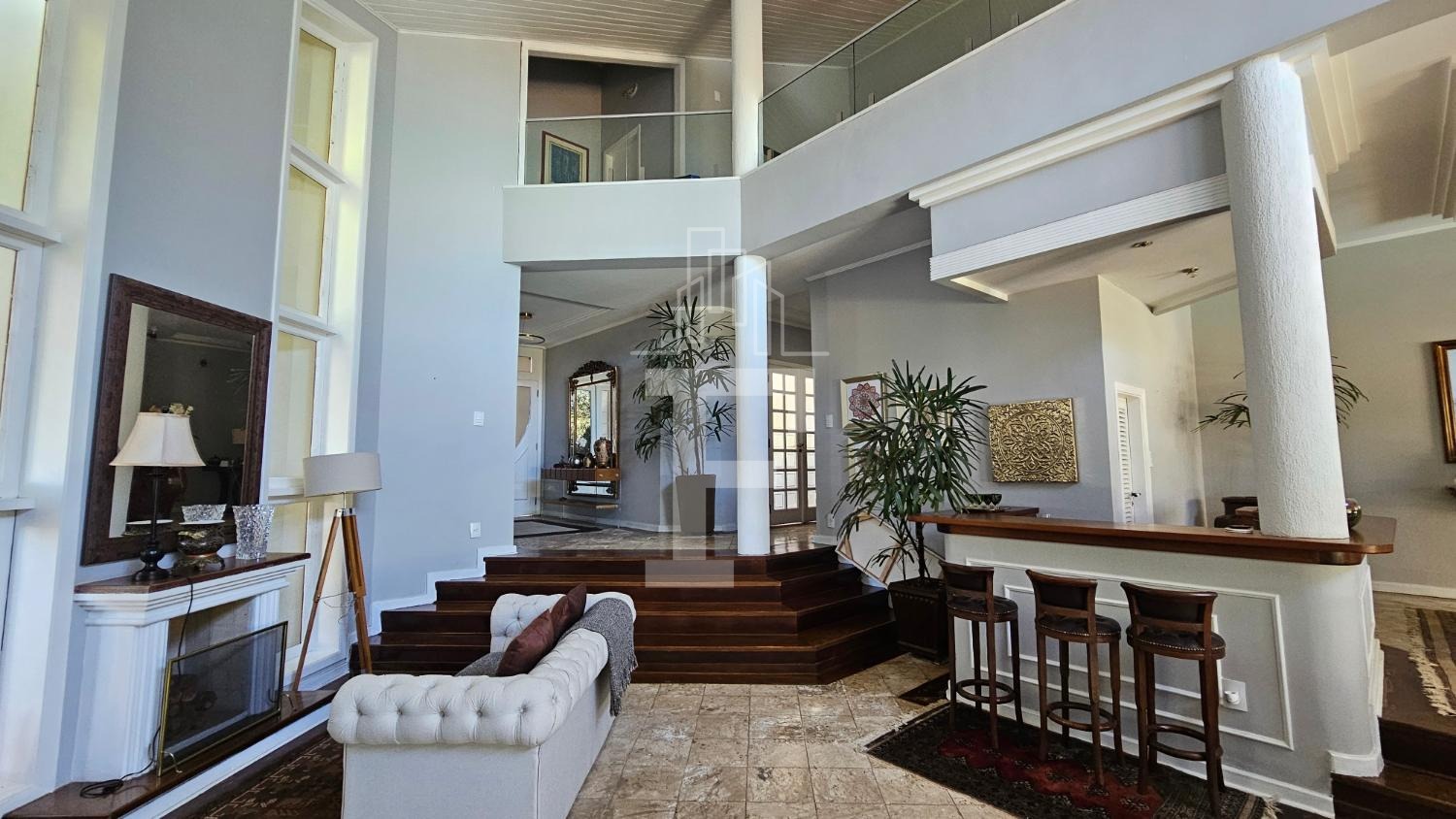 • Sala ampla em dois ambientes, aquecida por lareira charmosa, ideal para recepções memoráveis.
